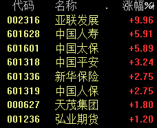 今天上午,保险板块继续反弹,中国太保(30.290, 1.61, 5.61%)、中国人寿(37.000, 1.80, 5.11%)涨幅居前。