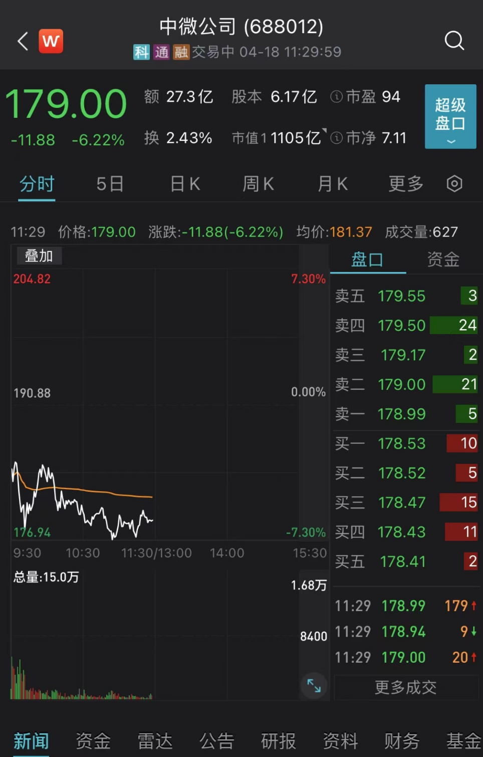 中微公司上午下跌6.22%,公司持股15.13%的股东巽鑫投资计划减持不超过2%公司股份。