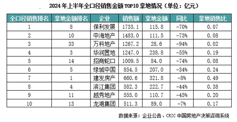 值得注意的是,上半年,仅三成销售百强房企仍在拿地,甚至头部央国企投资拿地的步伐也开始大幅放缓。